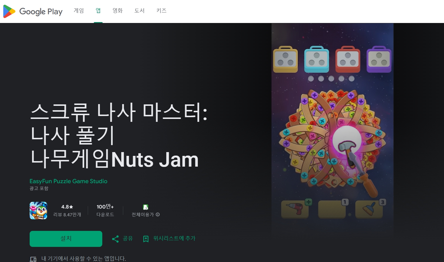 3️⃣ 스크류 나사 마스터: Nuts Jam – 창의적인 문제 해결이 필요해요!