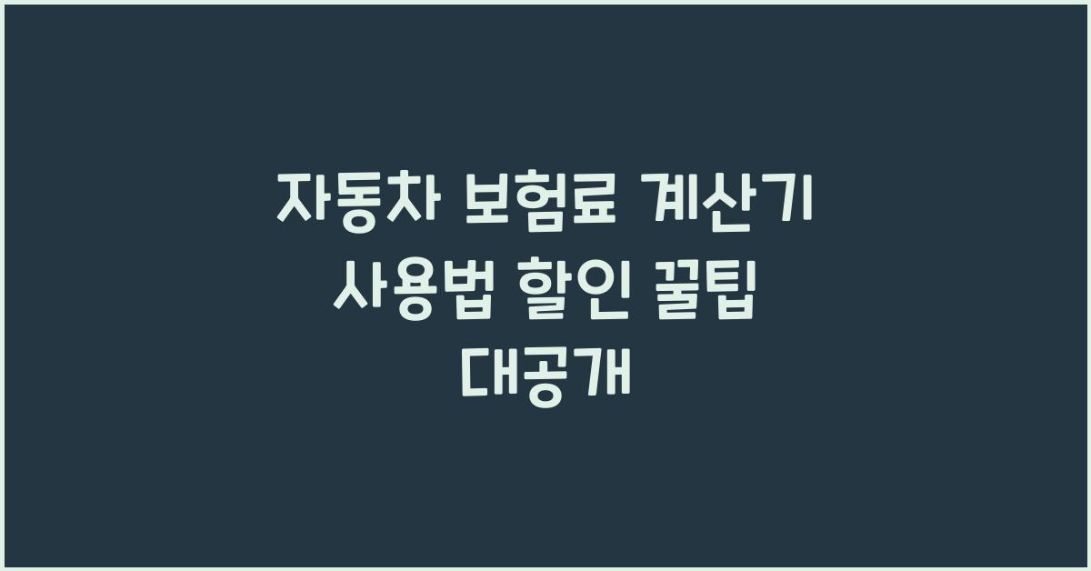 자동차 보험료는 여러 요소에 의해 결정됩니다. 자동차 보험료 계산기 사용법과 다양한 할인 꿀팁을 알면 자신의 보험료를 스마트하게 줄일 수 있습니다.