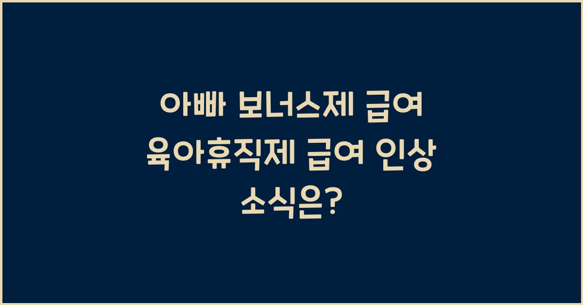 최근 아빠 보너스제 급여와 육아휴직제 급여 인상 소식이 전해졌습니다. 이 글에서는 그 의미와 변화의 배경, 그리고 부모에게 어떤 긍정적 영향을 미칠지 살펴보겠습니다.