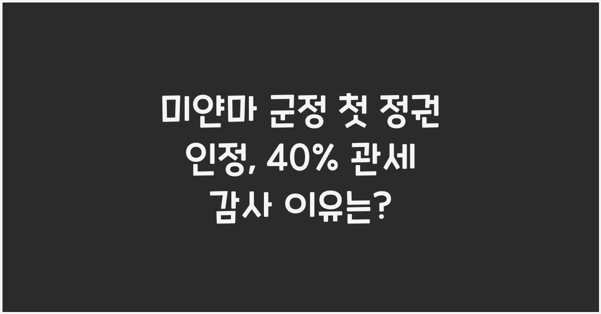 미얀마 군정 첫 정권 인정을 비롯한 40% 관세 통보에 대한 배경과 그 의미를 살펴봅니다. 각국의 지정학적 변화를 이해하고 국제 사회가 미얀마와의 관계에 대해 어떤 입장을 취하고 있는지 알아보세요.