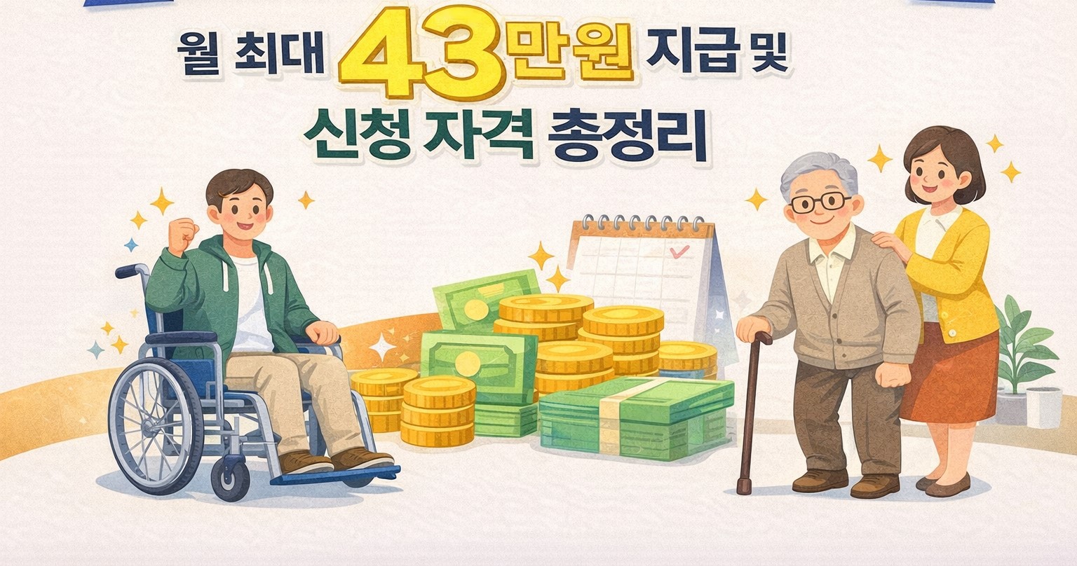 2026년부터 장애인연금이 **월 최대 43만 원(기초급여 35만 원 + 부가급여 8만 원)**으로 인상됩니다.